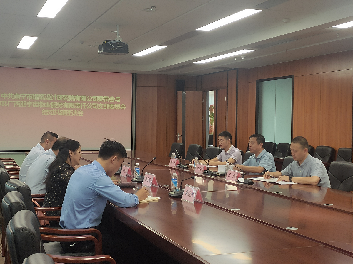 為進一步強化黨建引領,深入貫徹落實習近平總書記在慶祝中國共產黨成立100周年大會上的講話精神,切實加強國有企業黨組織與民營企業黨組織的雙方合作交流,鞏固共建質量及服務效能,7月15日,廣西朋宇組物業服務有限責任公司黨支部書記肖建光一行4人受邀蒞臨我公司,與我公司黨委委員開展結對共建座談交流會。